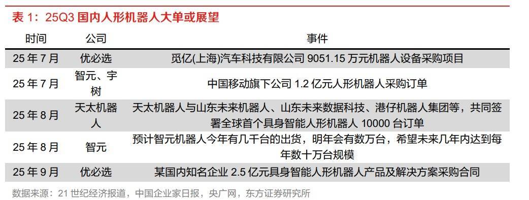 产业化进程方面,头部企业订单量也在持续攀升。智元机器人负责人透露:“今年下半年公司人形机器人订单量出现大幅上涨,行业迎来了量产的关键时期。”中国移动采购与招标网也显示,智元机器人和宇树科技近期联合中标1.24亿元中国移动“人形双足机器人代工服务采购项目”。